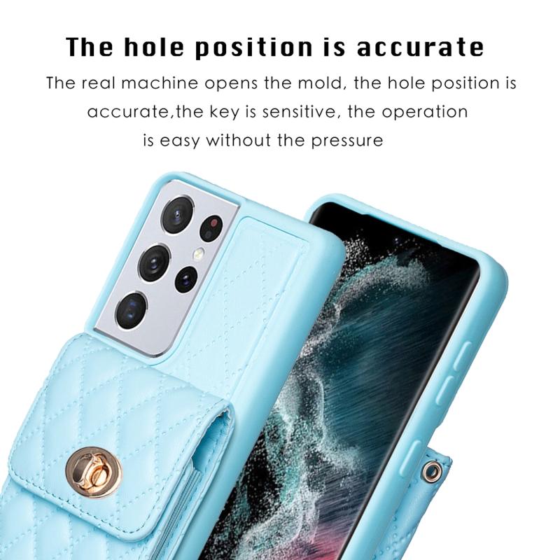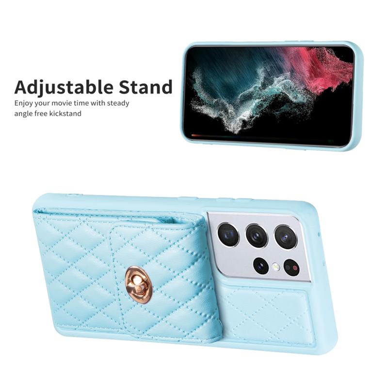 Θήκη τηλεφώνου Samsung Galaxy S21 Ultra 5G, κάθετη μεταλλική θήκη πορτοφολιού, δερμάτινη με ρόμβους (Μπλε)