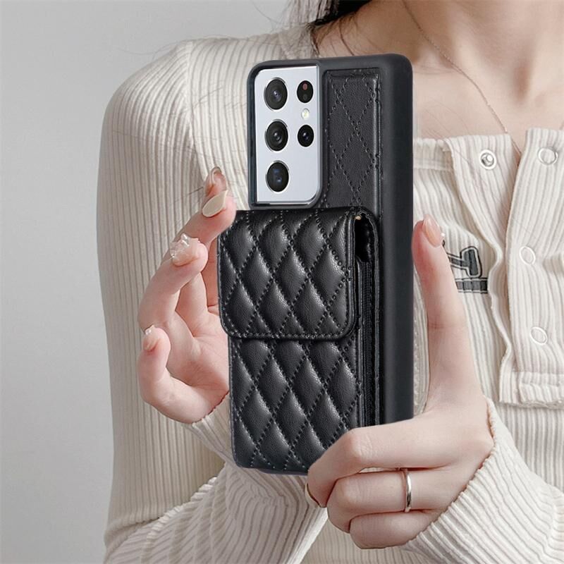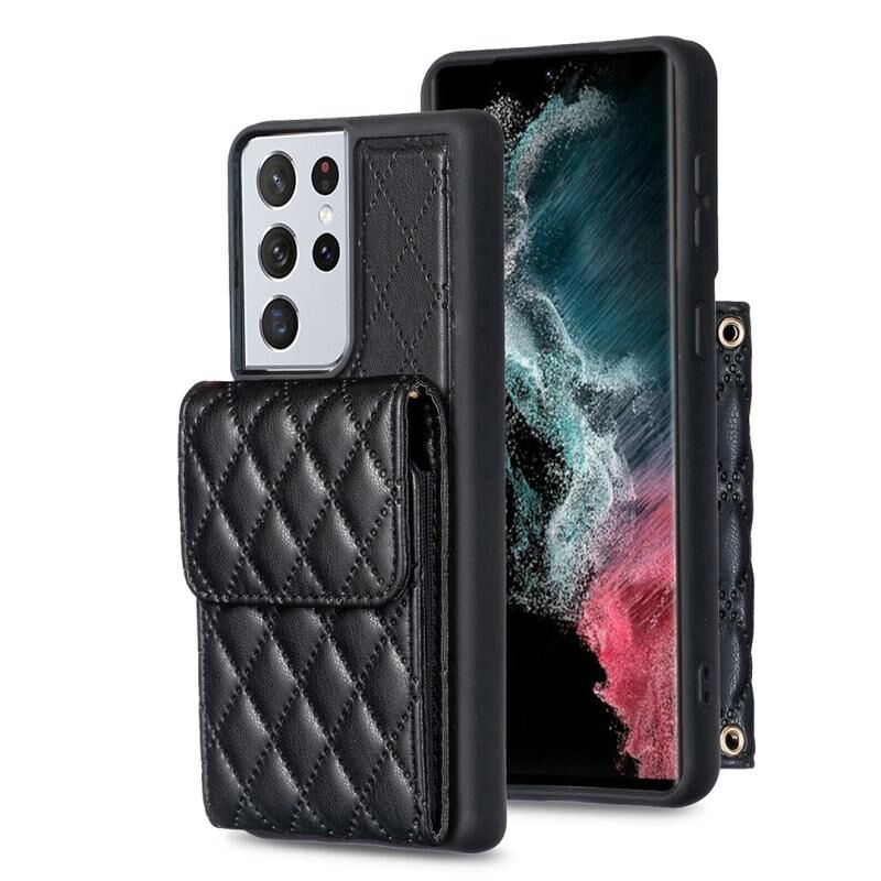 Θήκη τηλεφώνου Samsung Galaxy S21 Ultra 5G κάθετη πορτοφόλι δερμάτινη ρόμβος (Μαύρο)