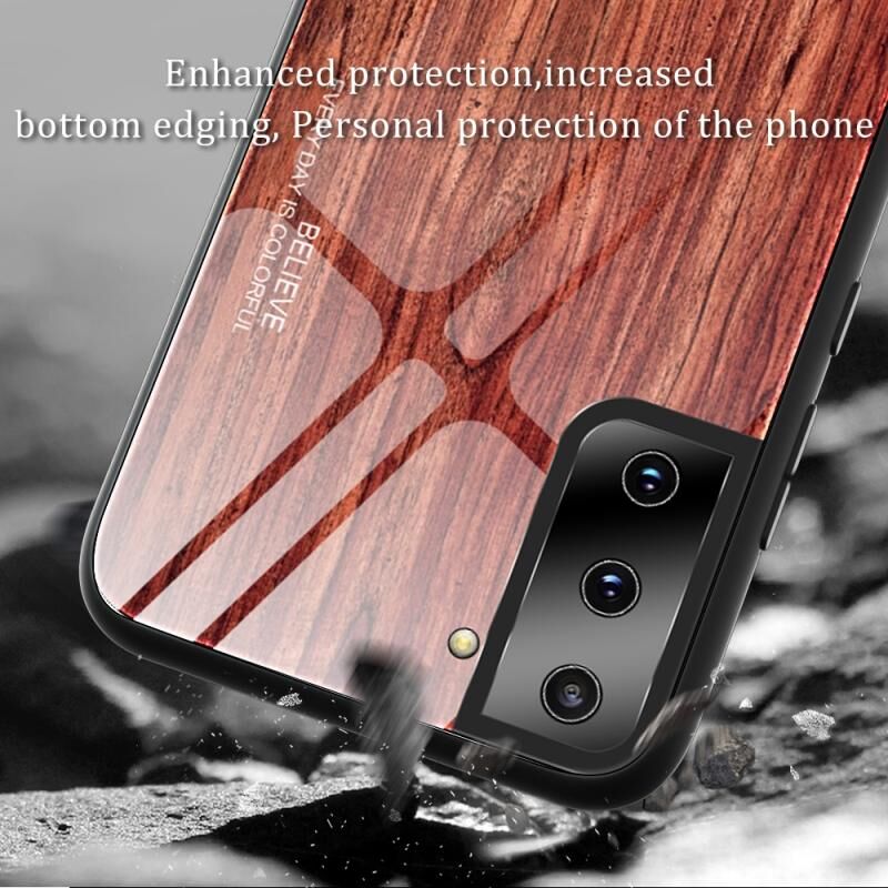 Για Samsung Galaxy S21 Ultra 5G Wood Grain Γυάλινη Προστατευτική Θήκη(M04)