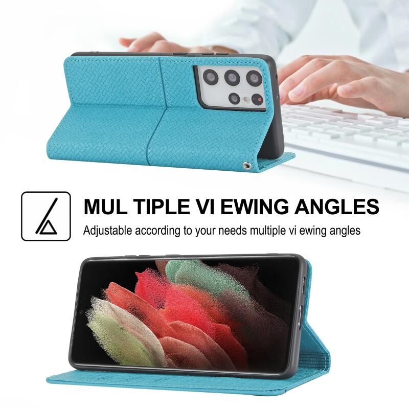 Για Samsung Galaxy S21 Ultra 5G Υφαντή υφή ραφή μαγνητική οριζόντια Flip PU δέρμα υπόθεση με θήκη & υποδοχές για κάρτες & πορτοφόλι & κορδόνι (μπλε)