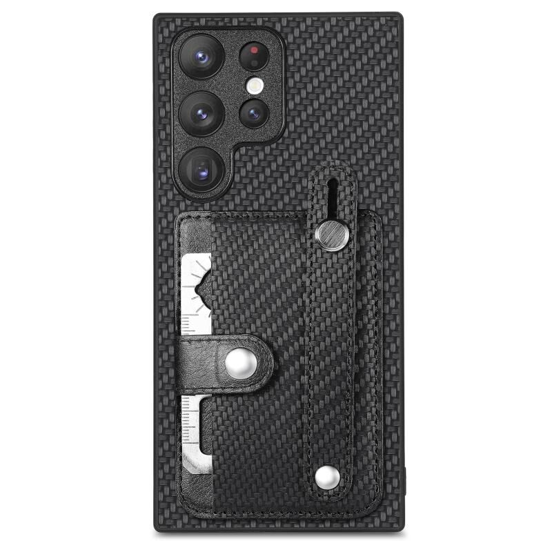 Για το Samsung Galaxy S21 Ultra 5G Wristband Kickstand Wallet Πίσω θήκη τηλεφώνου με μαχαίρι εργαλείο (Μαύρο)