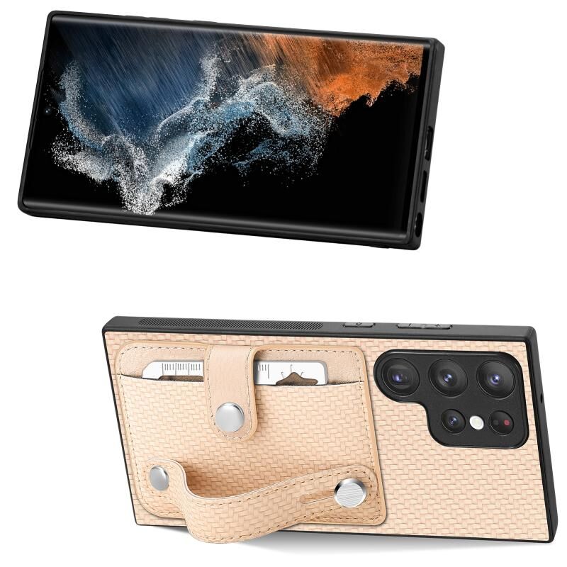 Για Samsung Galaxy S21 Ultra 5G Wristband Kickstand Wallet πίσω τηλέφωνο υπόθεση με εργαλείο μαχαίρι (χακί)