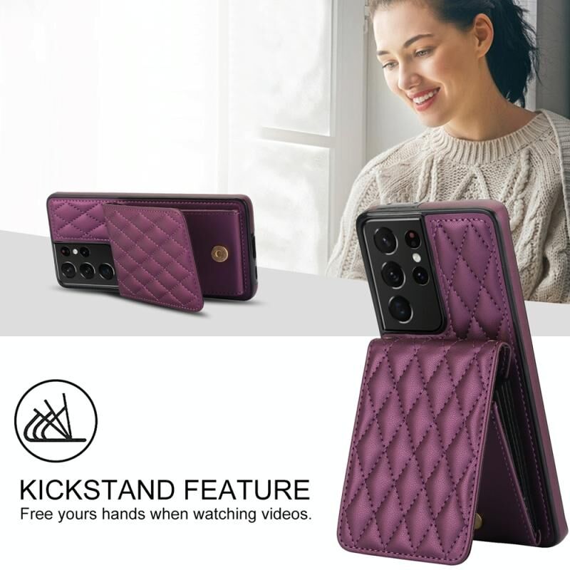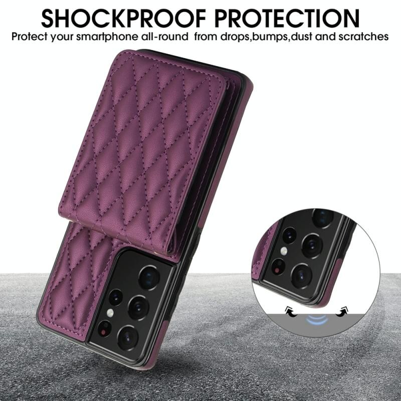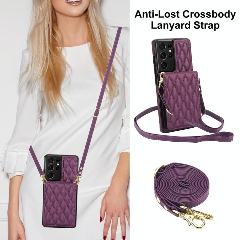 Για Samsung Galaxy S21 Ultra 5G YM015 Crossbody Rhombic κάρτα τσάντα RFID υπόθεση τηλεφώνου (σκούρο μωβ)