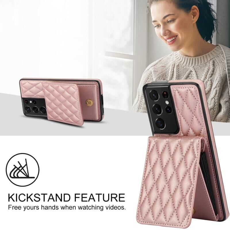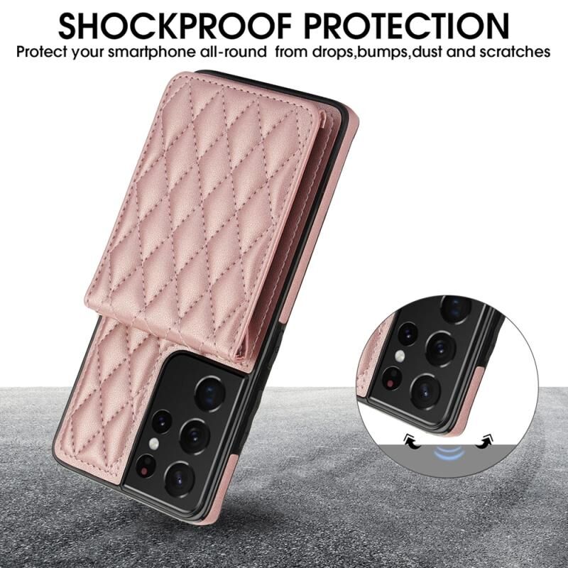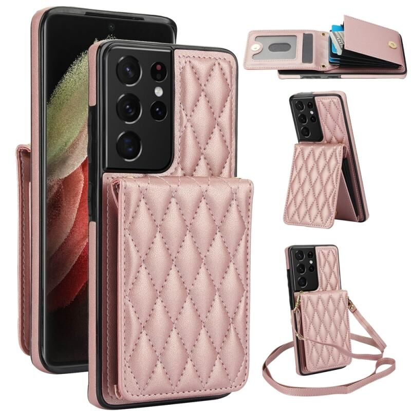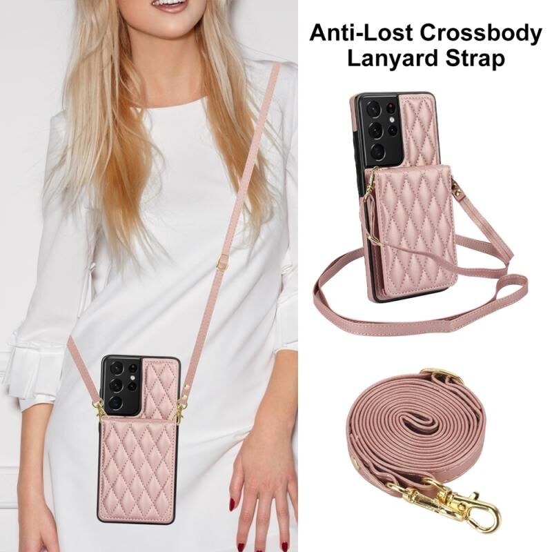 Για Samsung Galaxy S21 Ultra 5G YM015 Crossbody Rhombic κάρτα τσάντα RFID υπόθεση τηλεφώνου (Rose Gold)
