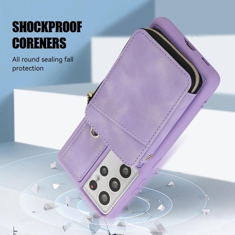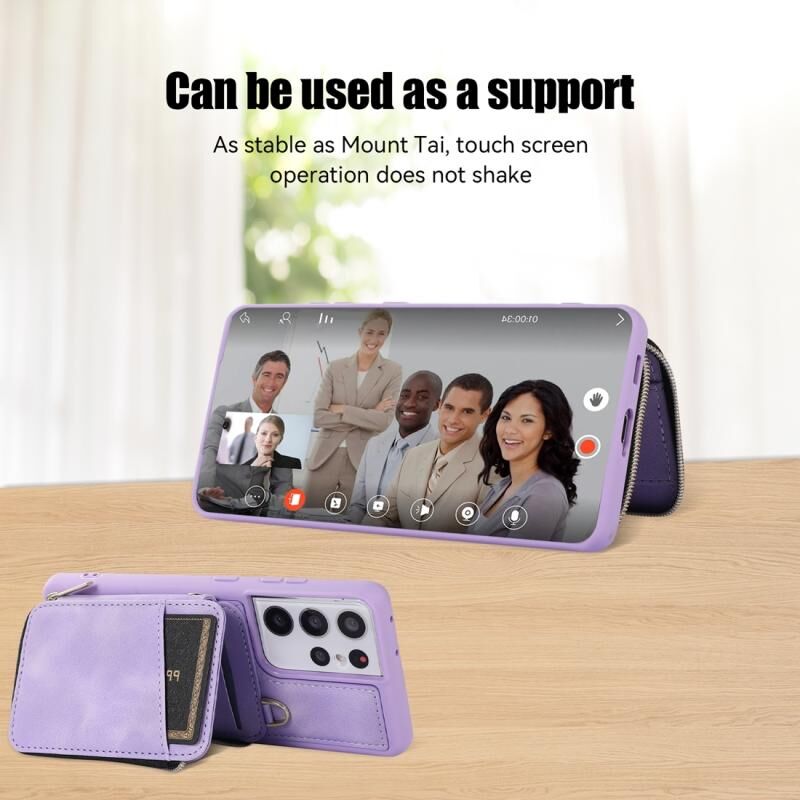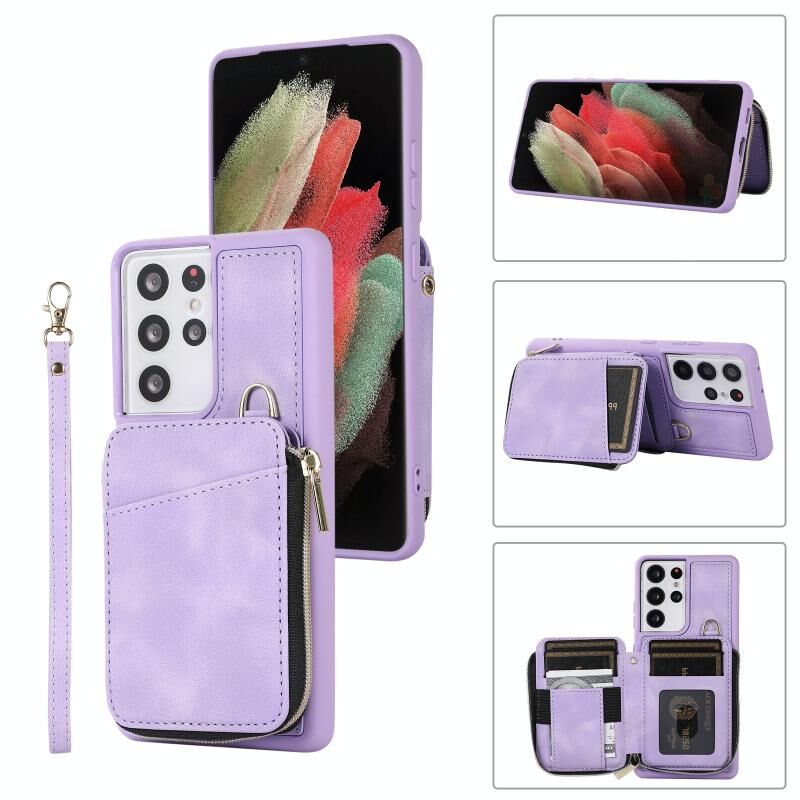Για Samsung Galaxy S21 Ultra 5G φερμουάρ τσάντα κάρτα πίσω κάλυμμα θήκη τηλεφώνου (μωβ)