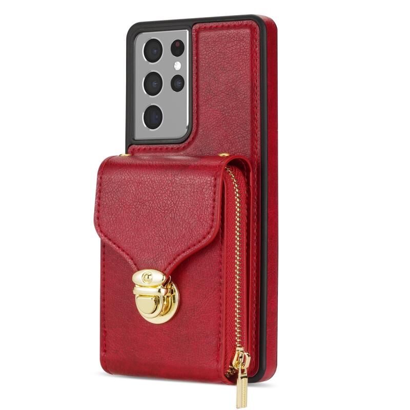 Για Samsung Galaxy S21 Ultra 5G φερμουάρ υλικό κάρτα πορτοφόλι υπόθεση τηλεφώνου (κόκκινο)