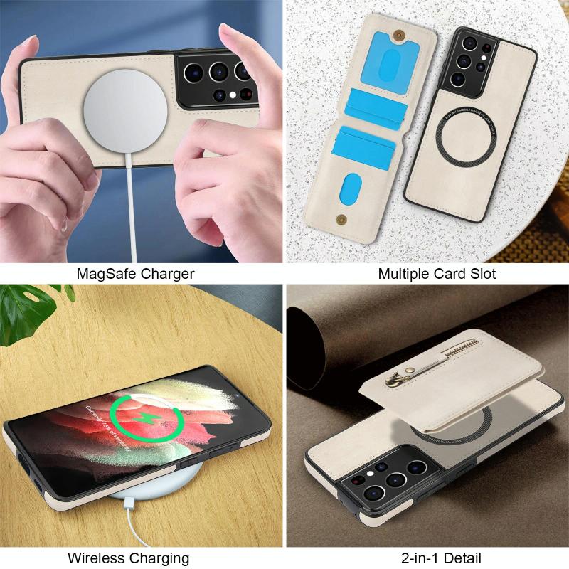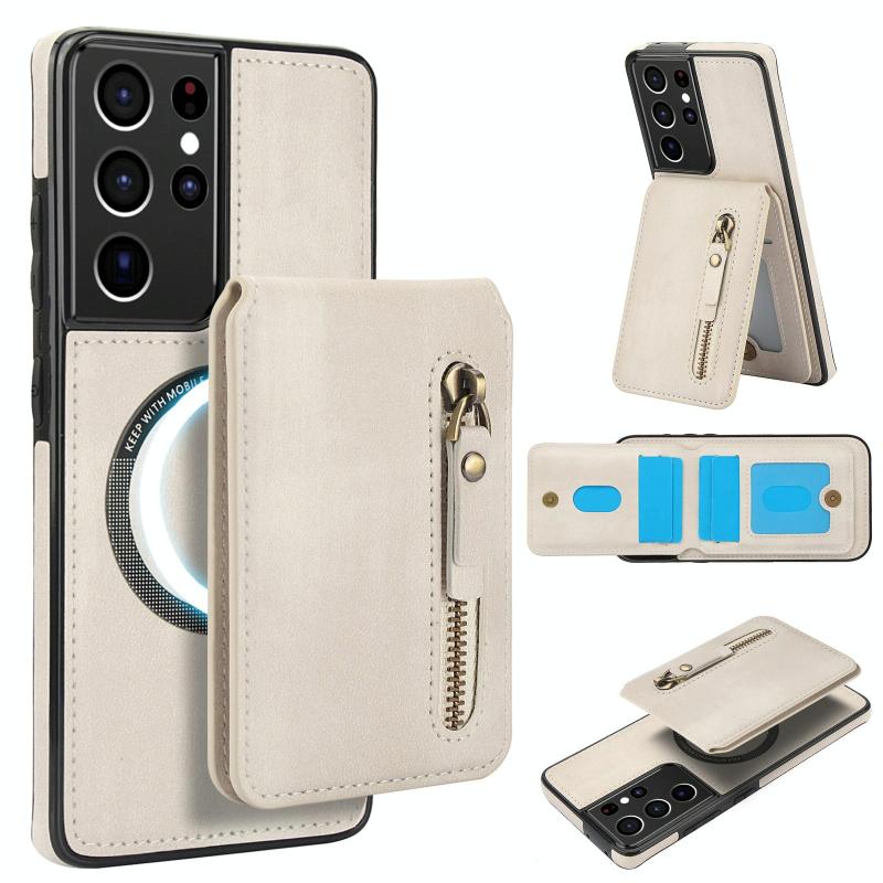 For Samsung Galaxy S21 Ultra 5G Zipper Wallet Split MagSafe Leather Back Phone Case(White)