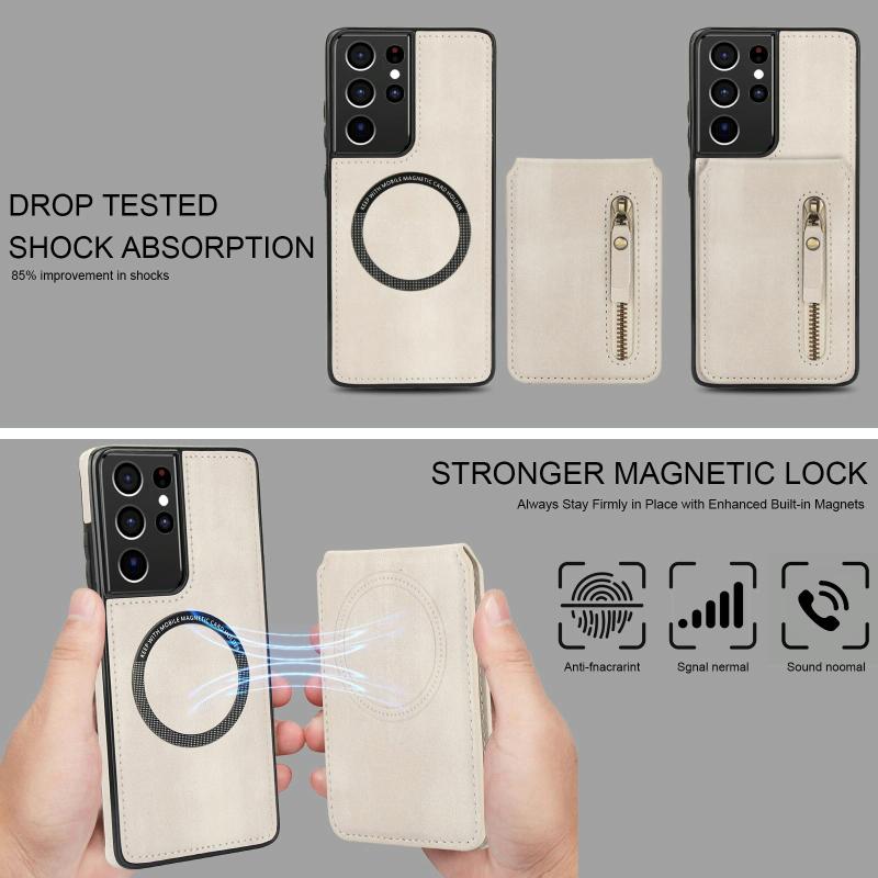 2. Zipper Wallet Function: Includes card slots and a cash compartment for storing your credit cards, cash, or small notes.
