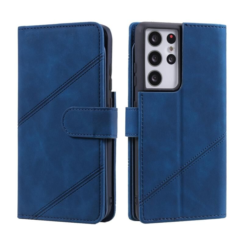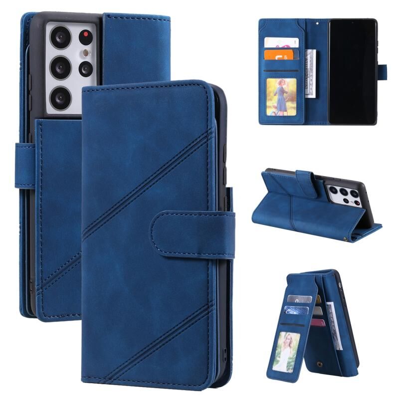 Για Samsung Galaxy S21 Ultra 5GSkin Feel Business Οριζόντια Flip PU δέρμα υπόθεση με θήκη & υποδοχές πολλαπλών καρτών & πορτοφόλι & κορδόνι & κορνίζα & κορνίζα φωτογραφιών (μπλε)