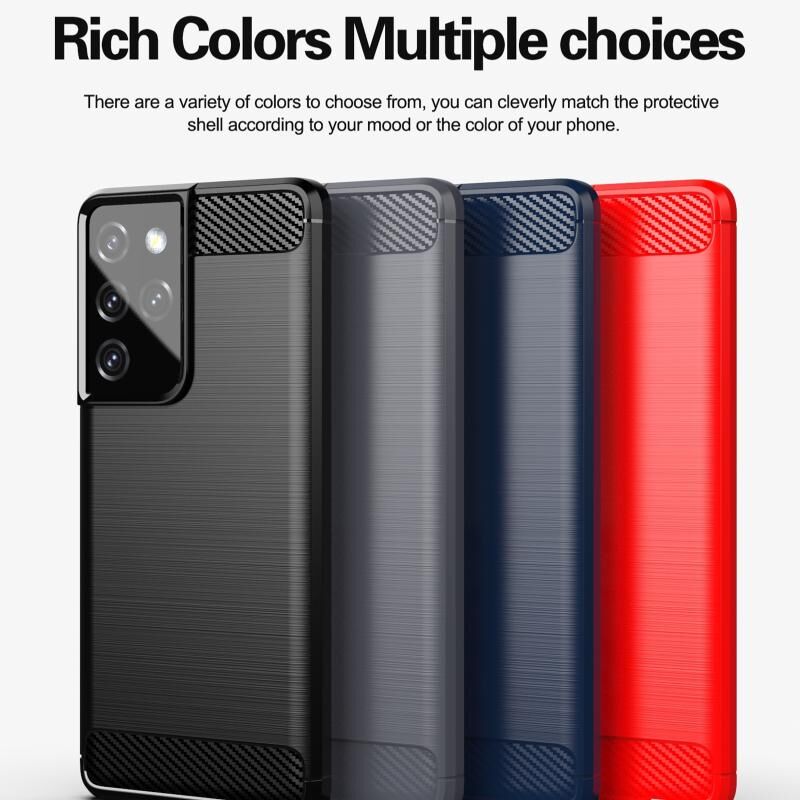 Για Samsung Galaxy S21 Ultra βουρτσισμένη υφή Carbon Fiber TPU υπόθεση τηλεφώνου (μπλε)