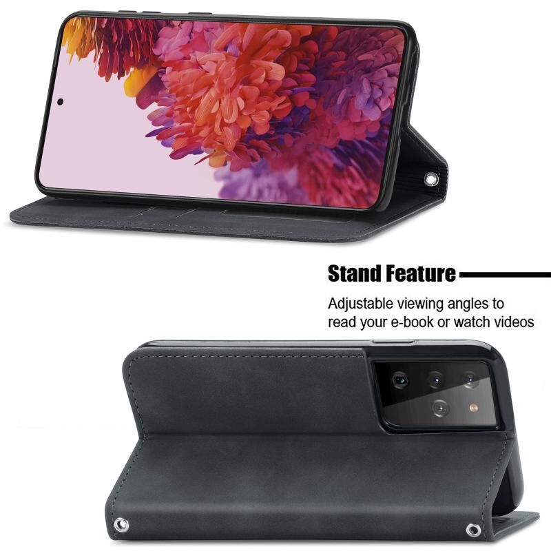 Για Samsung Galaxy S21 Ultra Retro Skin Feel Business μαγνητική οριζόντια Flip δερμάτινη θήκη με υποδοχές για κάρτες & πορτοφόλι & κορνίζα φωτογραφιών (Μαύρο)