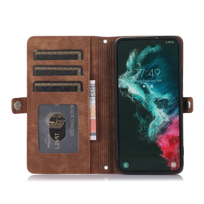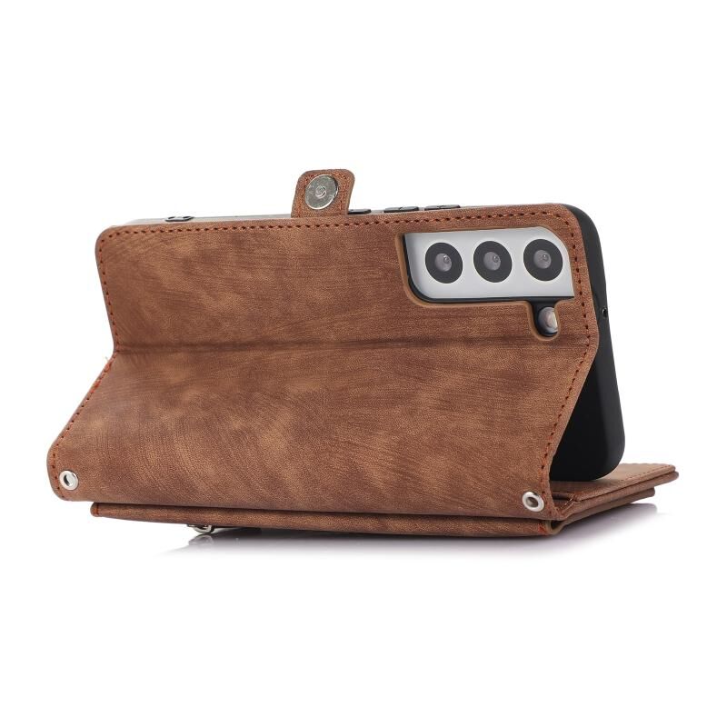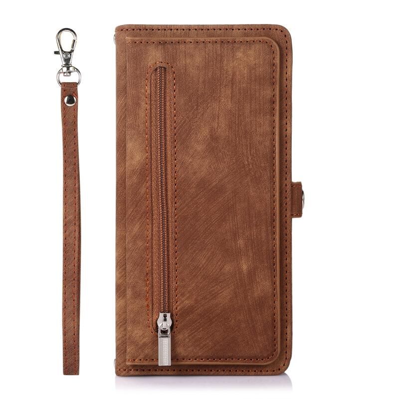 Για Samsung Galaxy S21+ φερμουάρ υποδοχή κάρτας πόρπη πορτοφόλι δερμάτινη θήκη τηλεφώνου (καφέ)