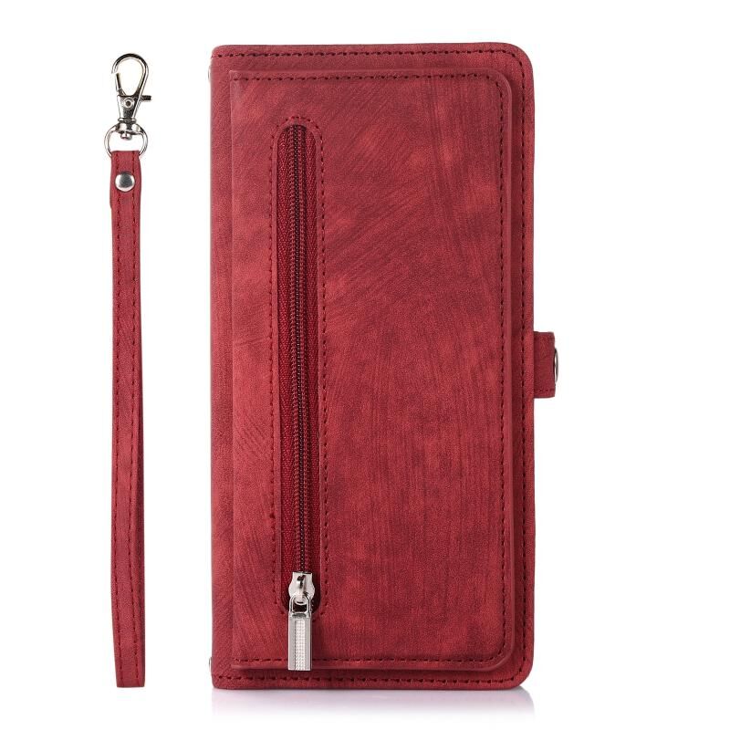 Για Samsung Galaxy S21+ φερμουάρ υποδοχή κάρτας πόρπη πορτοφόλι δερμάτινη θήκη τηλεφώνου (κόκκινο)