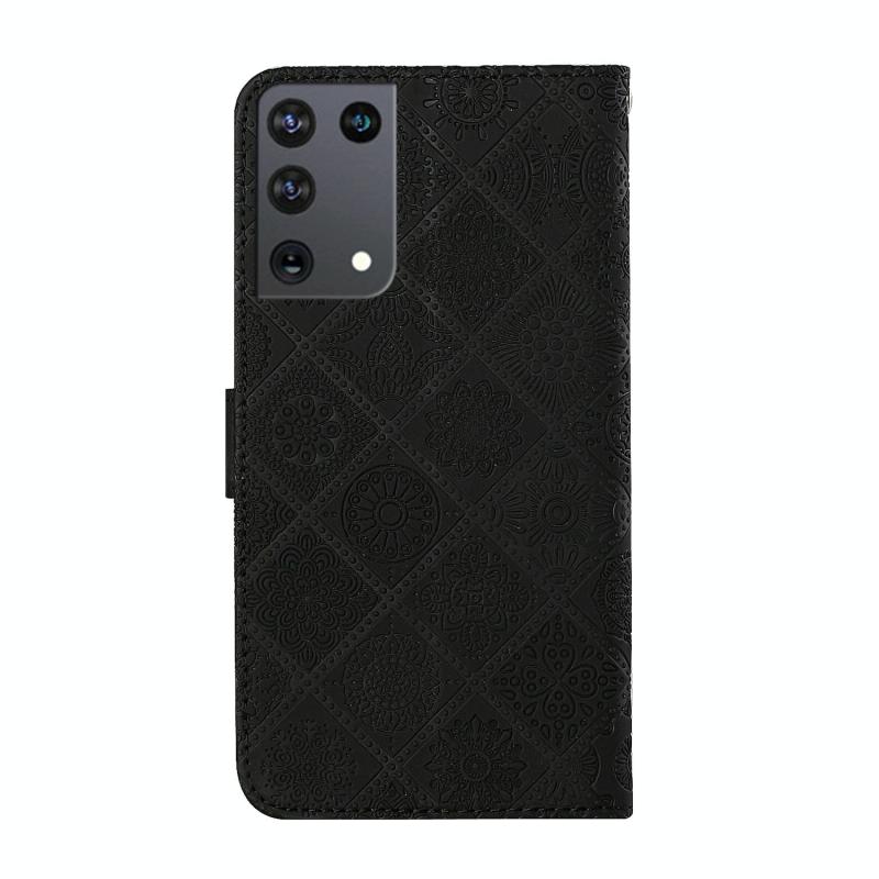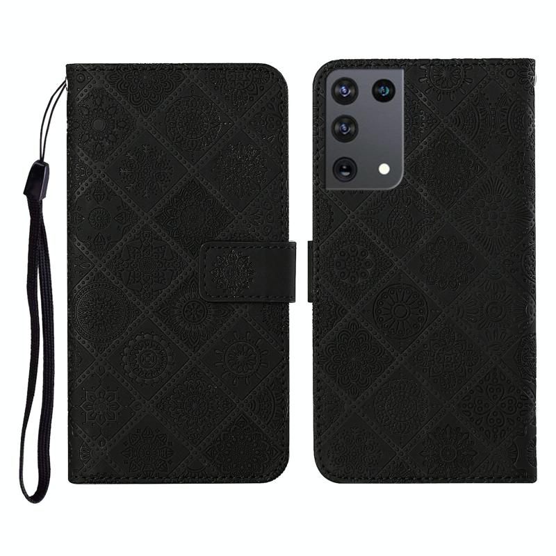 For Samsung Galaxy S21Ultra 5G Ethnic Style Embossed Pattern Horizontal Flip Leather Case with Holder & Card Slots & Wallet & Lanyard(Black)