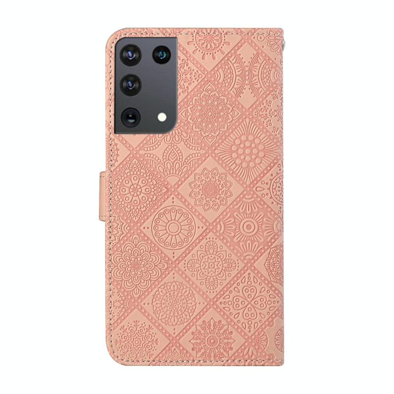 For Samsung Galaxy S21Ultra 5G Ethnic Style Embossed Pattern Horizontal Flip Leather Case with Holder & Card Slots & Wallet & Lanyard(Pink)