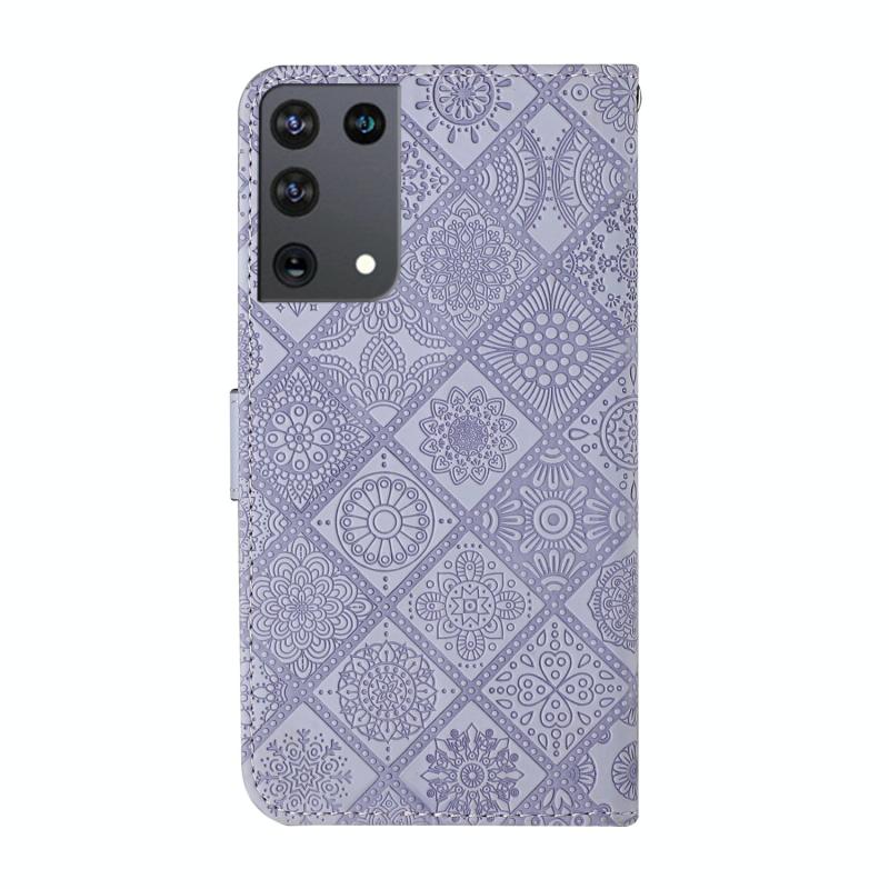 For Samsung Galaxy S21Ultra 5G Ethnic Style Embossed Pattern Horizontal Flip Leather Case with Holder & Card Slots & Wallet & Lanyard(Purple)