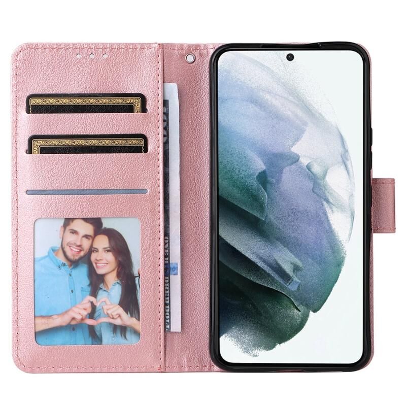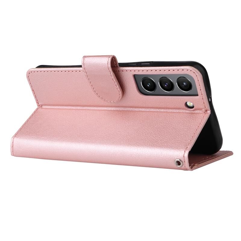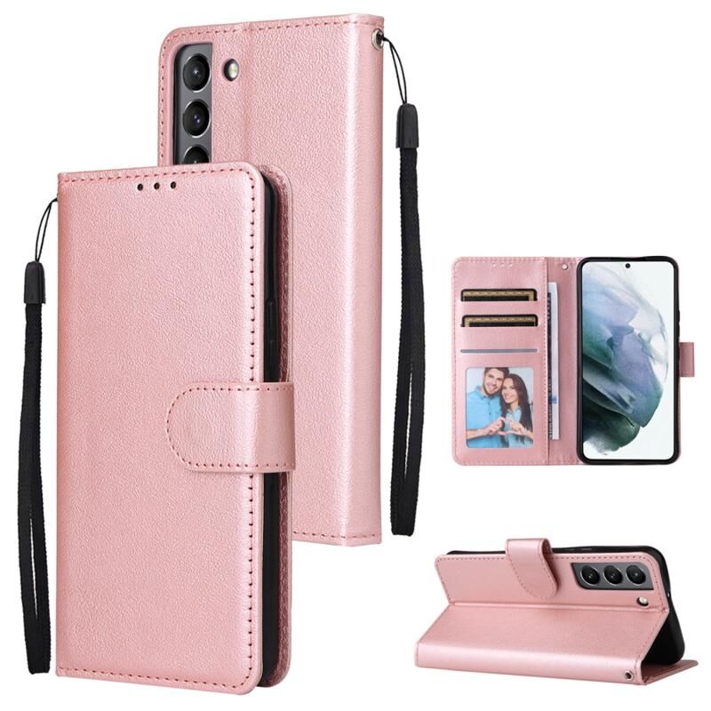 Για Samsung Galaxy S22 5G 3 υποδοχές για κάρτες Πολυλειτουργική δερμάτινη θήκη τηλεφώνου (ροζ χρυσό)