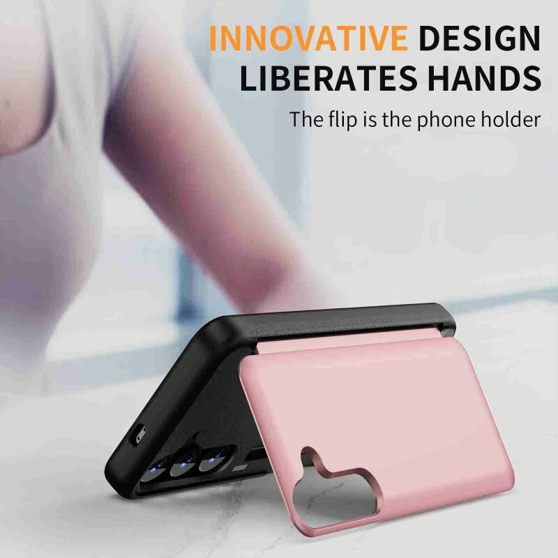 Για Samsung Galaxy S22+ 5G 3 σε 1 Flip θήκη τηλεφώνου κάτοχος (ροζ)