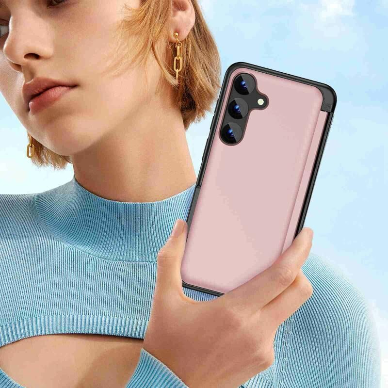 Για Samsung Galaxy S22 5G 3 σε 1 Flip θήκη τηλεφώνου κάτοχος (ροζ)