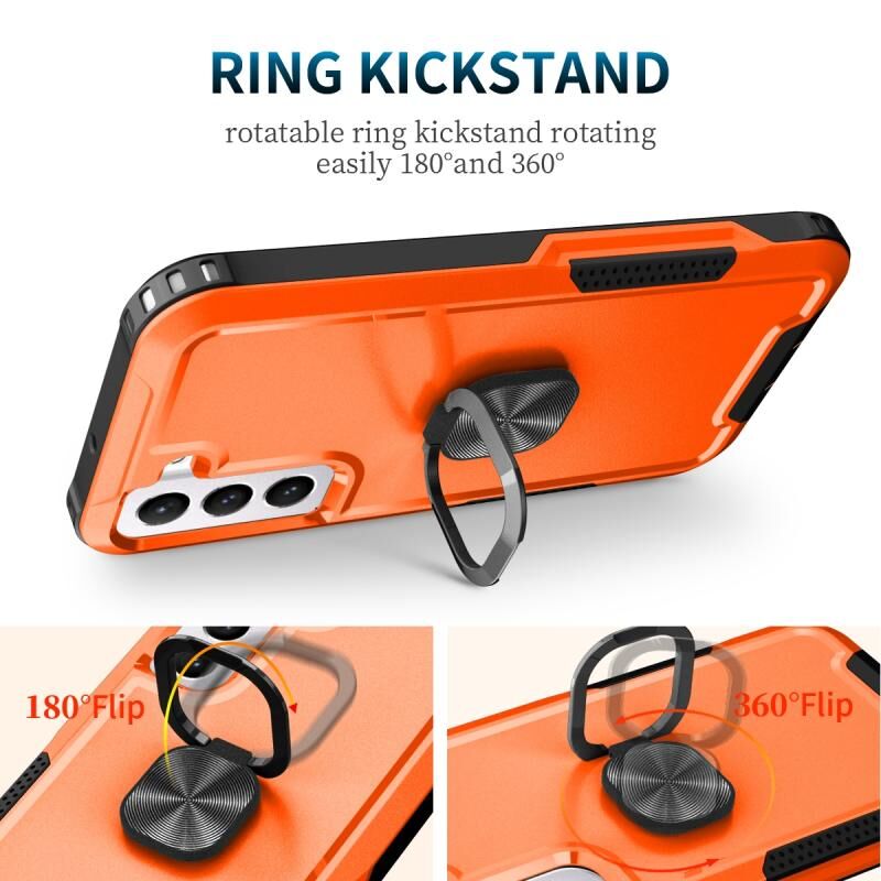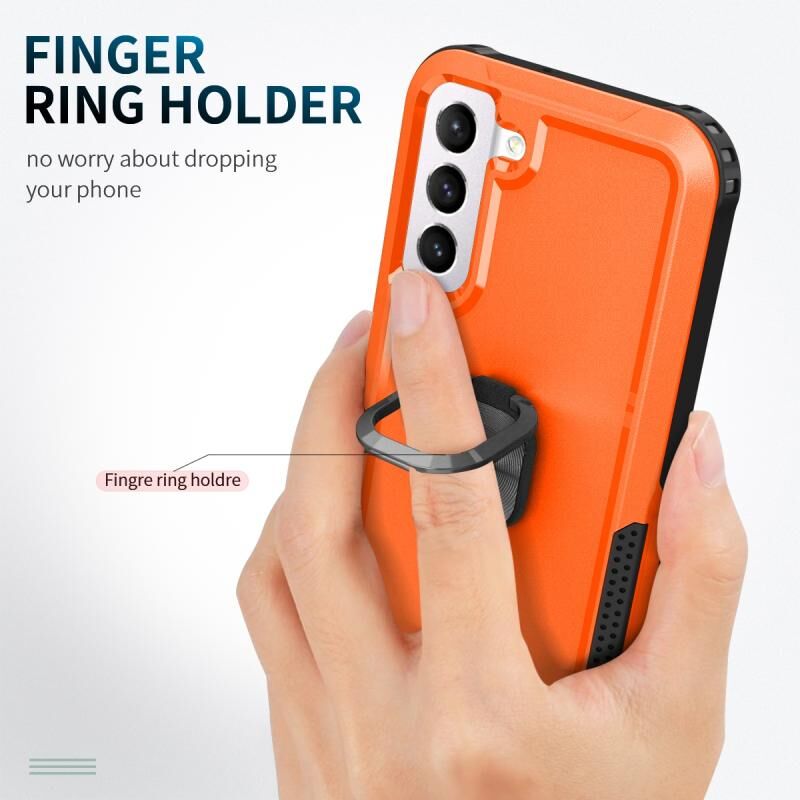 Για το Samsung Galaxy S22 5G 3 σε 1 δαχτυλίδι κάτοχος PC + TPU τηλέφωνο υπόθεση (πορτοκαλί)