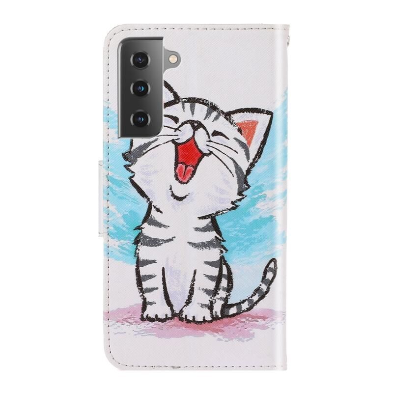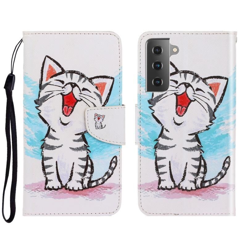 Θήκη τηλεφώνου Samsung Galaxy S22 5G 3D με έγχρωμη σχεδίαση, οριζόντια αναδιπλούμενη από δέρμα (Κόκκινο Γάτα με στόμα)
