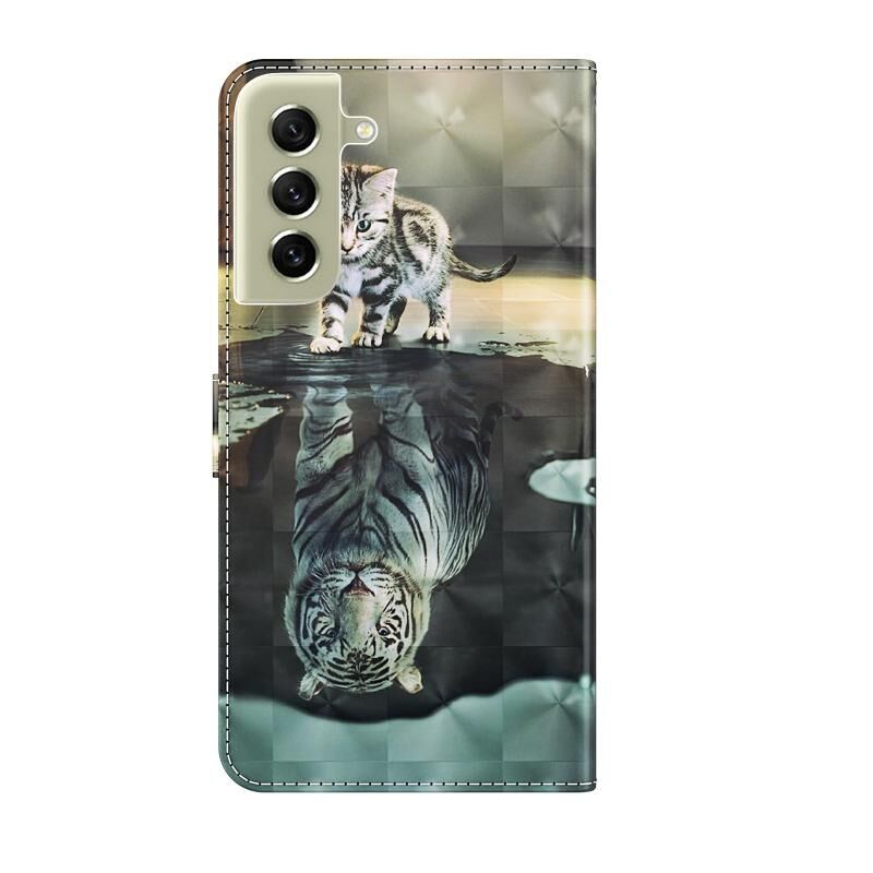 Θήκη κινητού τηλεφώνου Samsung Galaxy S22+ 5G με σχέδιο 3D ζωγραφικής, κατασκευασμένη από TPU + Δερματίνη PU (Γάτα, Τίγρης)