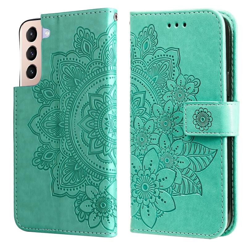 Για Samsung Galaxy S22 + 5G 7-πέταλο λουλούδια ανάγλυφο Flip δερμάτινη θήκη τηλεφώνου με θήκη & υποδοχές για κάρτες (πράσινο)