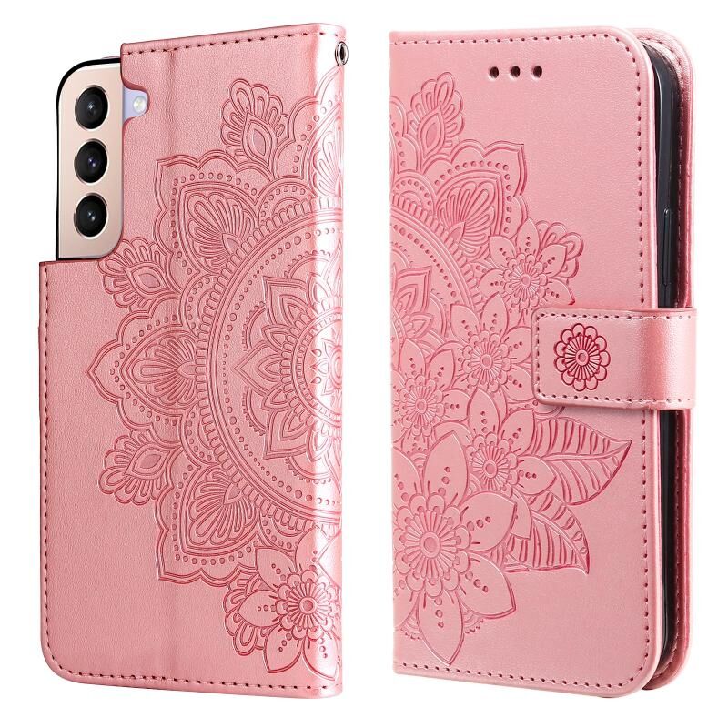 Για Samsung Galaxy S22 5G 7-πέταλο λουλούδια ανάγλυφο Flip δερμάτινη θήκη τηλεφώνου με θήκη & υποδοχές για κάρτες (Rose Gold)