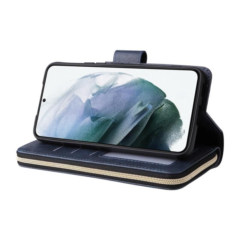 Για Samsung Galaxy S22 5G 9 υποδοχές καρτών φερμουάρ πορτοφόλι τσάντα δέρμα τηλέφωνο υπόθεση (μπλε)
