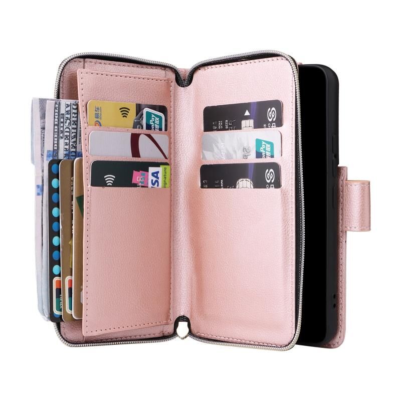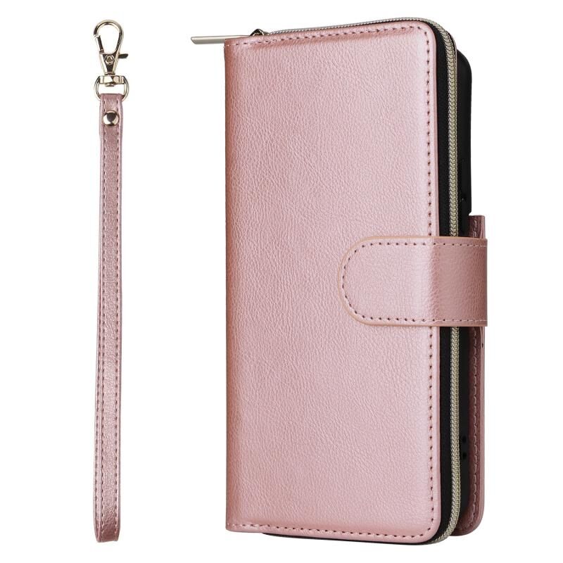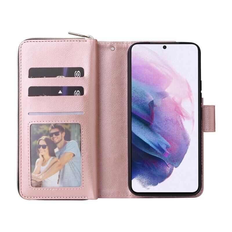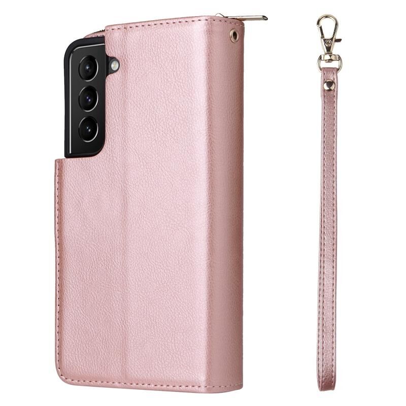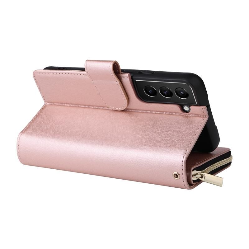 Για Samsung Galaxy S22 + 5G 9 υποδοχές καρτών φερμουάρ πορτοφόλι τσάντα δερμάτινη θήκη τηλεφώνου (Rose Gold)