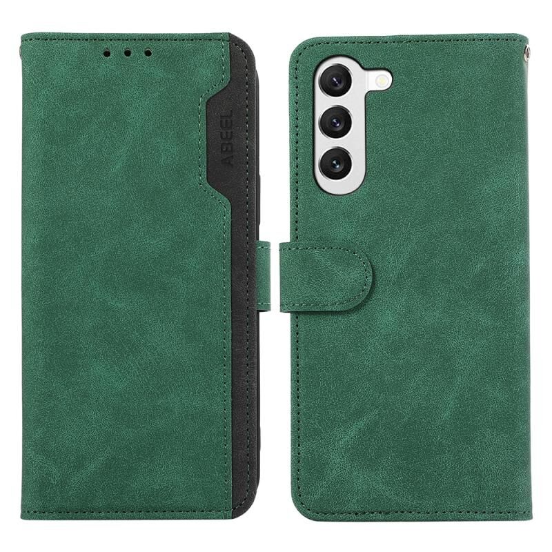 Θήκη τηλεφώνου Samsung Galaxy S22 5G ABEEL Color Block Μαγνητική Δερμάτινη με Προστασία RFID (Μπλε-Καφέ)