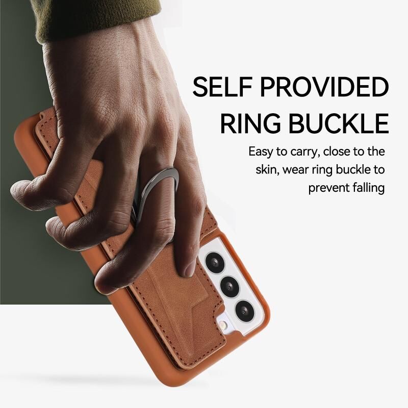 Για Samsung Galaxy S22+ 5G θωράκιση δαχτυλίδι πορτοφόλι πίσω κάλυμμα τηλεφώνου υπόθεση (καφέ)