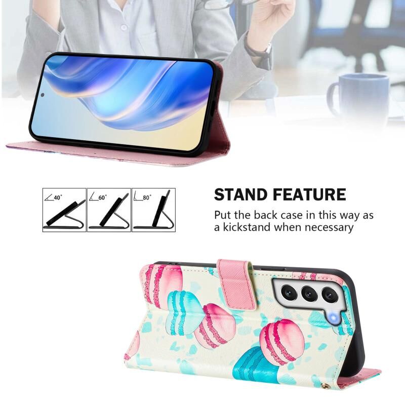 Θήκη τηλεφώνου Samsung Galaxy S22+ 5G από δέρμα με σχέδιο ζωγραφικής και πολύχρωμο σχέδιο (Τούρτα)