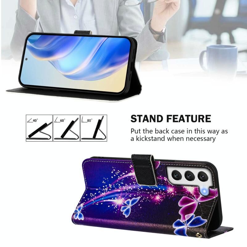 For Samsung Galaxy S22 5G Art Colored Drawing Pattern Leather Phone Case(Fireworks butterfly)