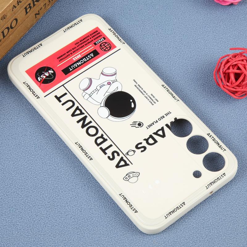 Θήκη τηλεφώνου Samsung Galaxy S22+ 5G, σιλικόνης, με ευθύγραμμο περίγραμμα και σχέδιο αστροναύτη (Όμορφος αστροναύτης - Μαύρο)