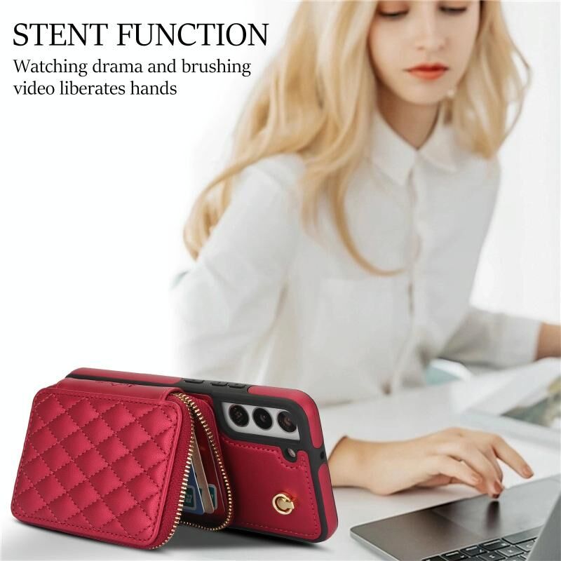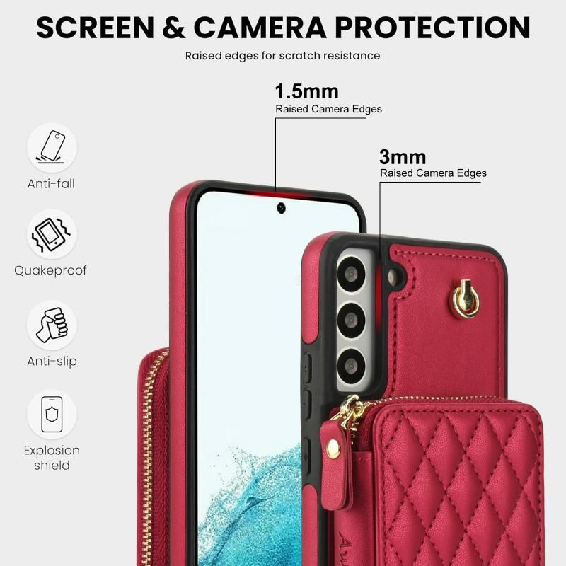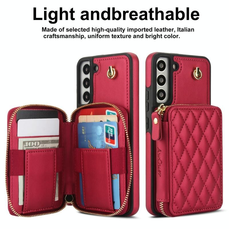 Θήκη κινητού τηλεφώνου Samsung Galaxy S22 5G AwQuer Crossbody με φερμουάρ, πορτοφόλι από δέρμα με ρόμβους (Κόκκινο) (Awquer)