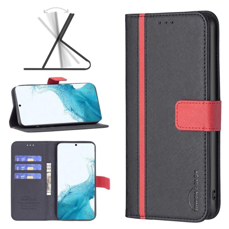 Για Samsung Galaxy S22 5G BF13 χρώμα ταιριάζει με σταυρό υφή δερμάτινη θήκη τηλεφώνου (μαύρο)
