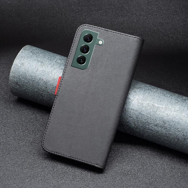 Για Samsung Galaxy S22 + 5G BF13 χρώμα ταιριάζει με σταυρό υφή δερμάτινη θήκη τηλεφώνου (μαύρο)