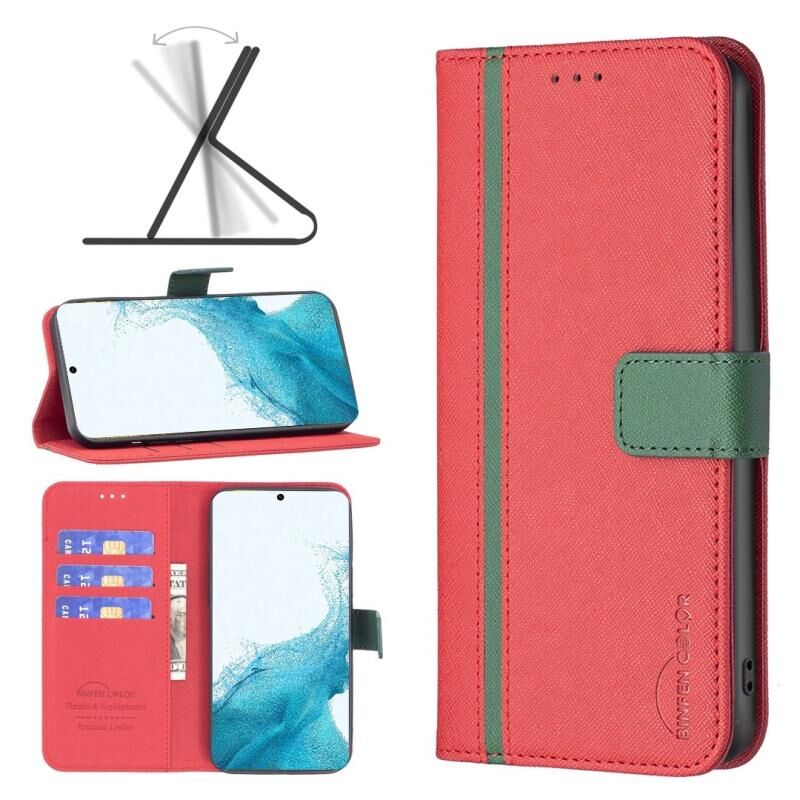 Για Samsung Galaxy S22 + 5G BF13 χρώμα ταιριάζει με το χρώμα σταυρό υφή δερμάτινη θήκη τηλεφώνου (κόκκινο)