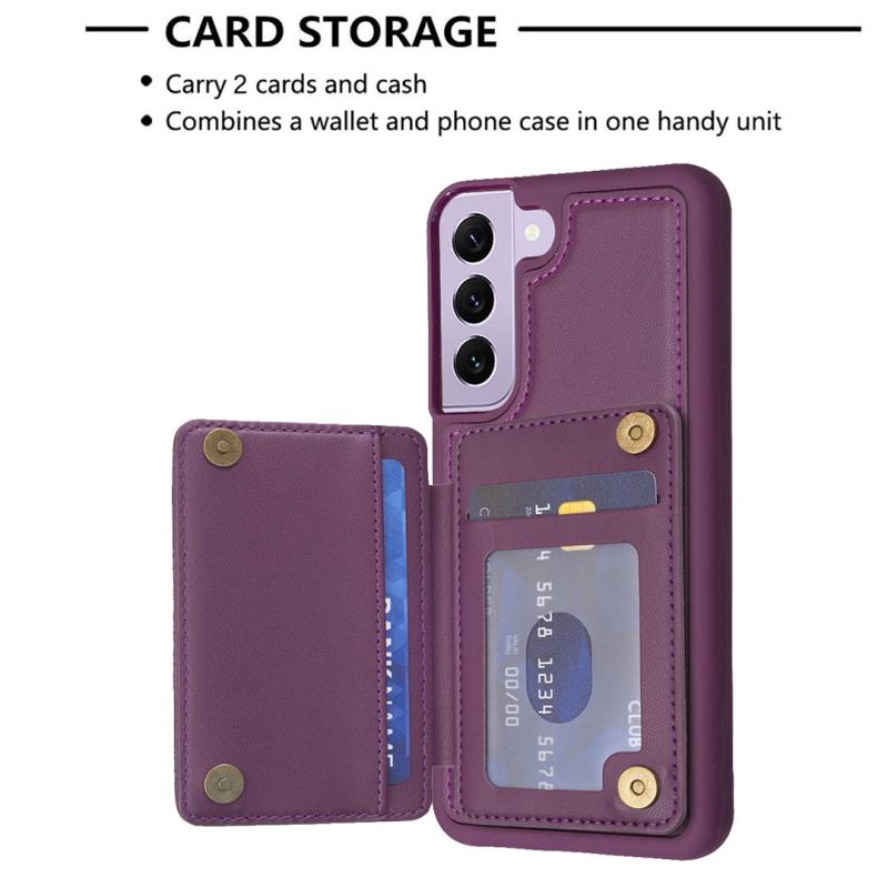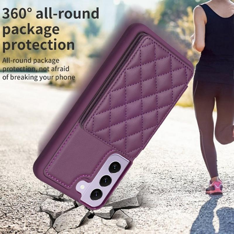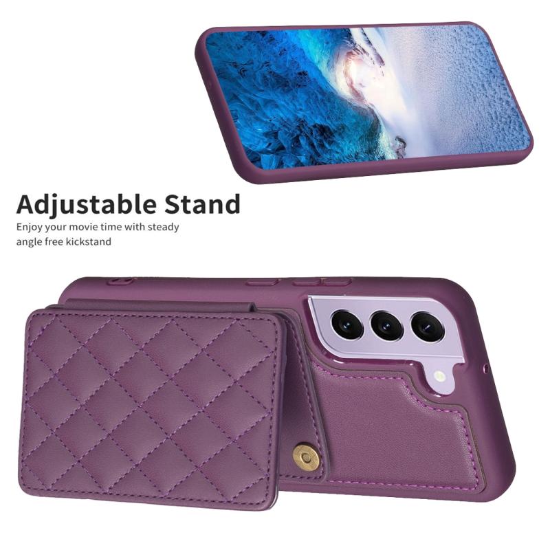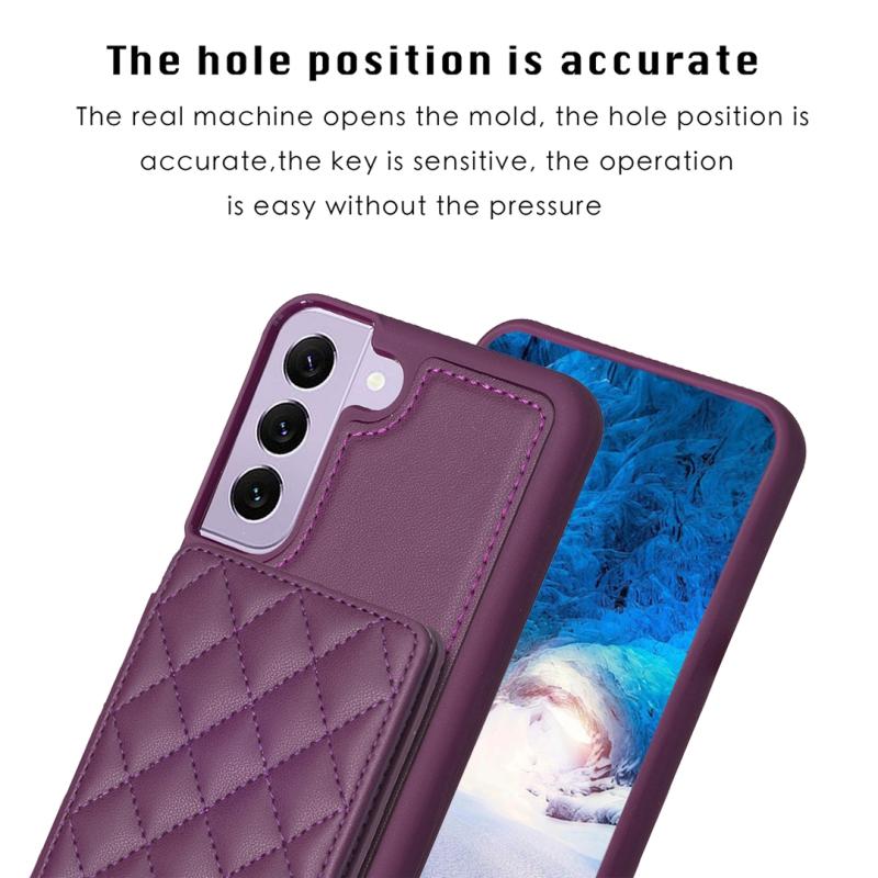 For Samsung Galaxy S22+ 5G BF25 Square Plaid Card Bag Holder Phone Case(Dark Purple)