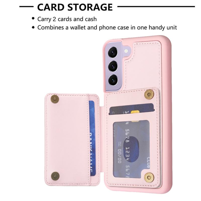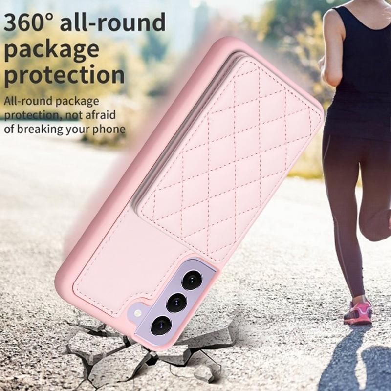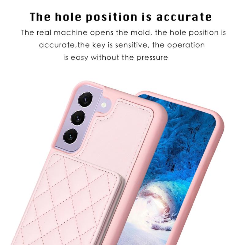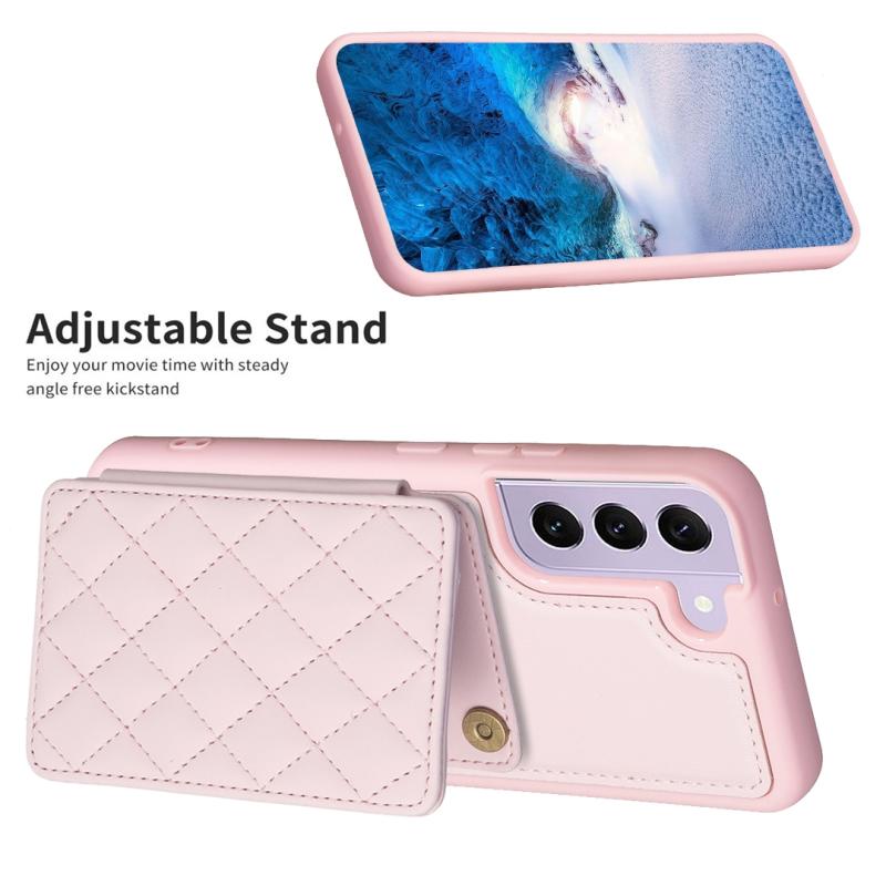 For Samsung Galaxy S22+ 5G BF25 Square Plaid Card Bag Holder Phone Case(Pink)