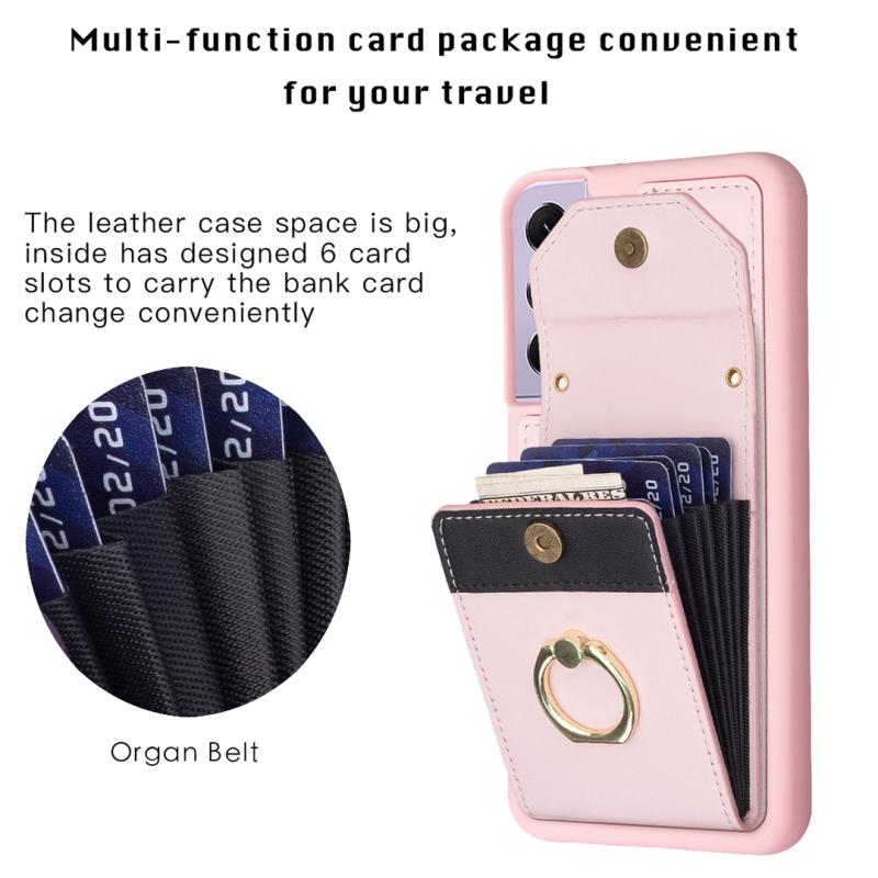 For Samsung Galaxy S22+ 5G BF29 Organ Card Bag Ring Holder Phone Case(Pink)