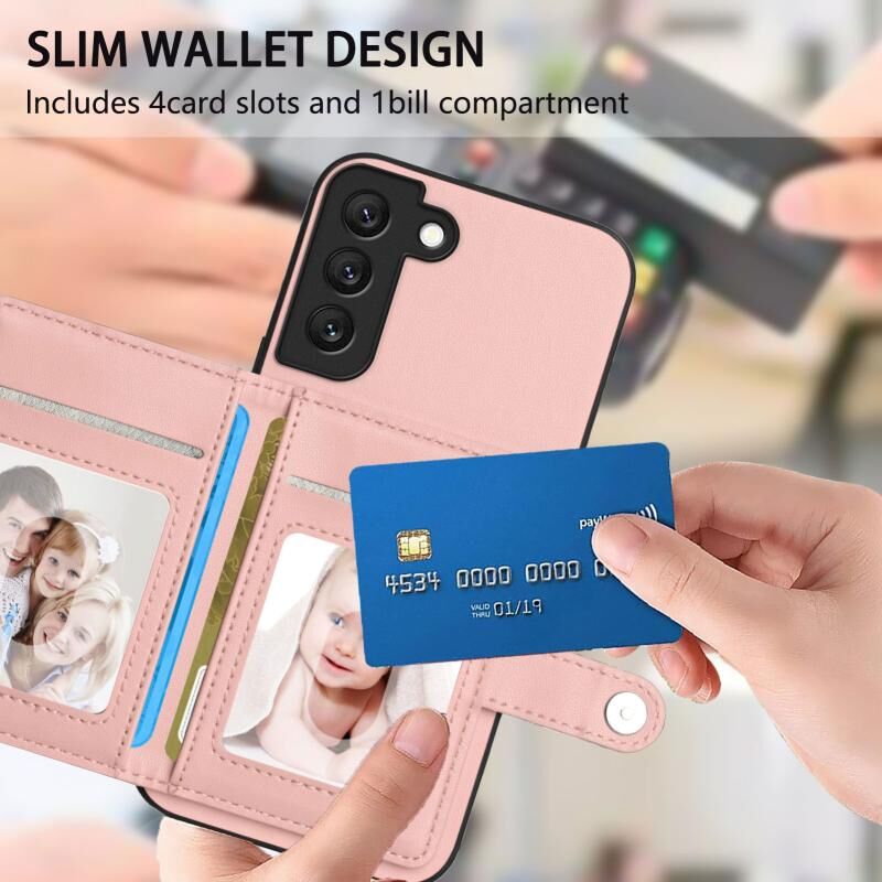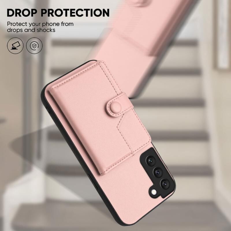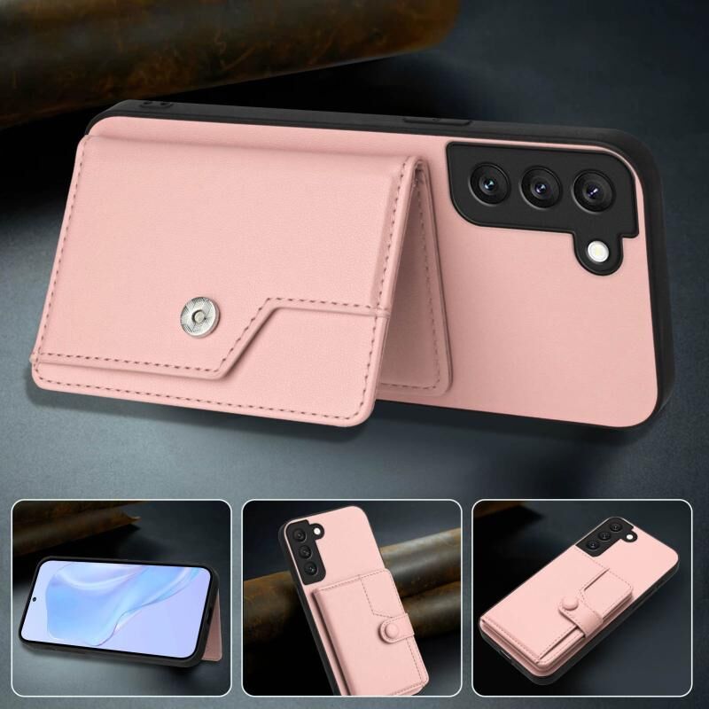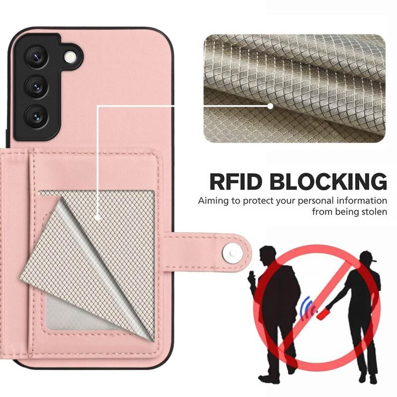 For Samsung Galaxy S22+ 5G Button Card Bag RFID Anti-theft Phone Case(Pink)