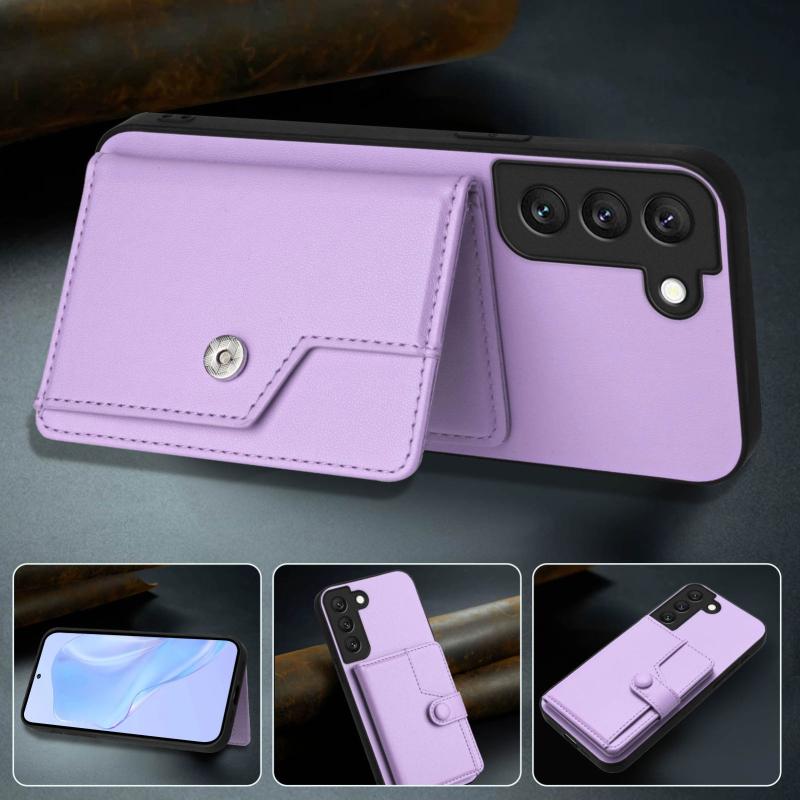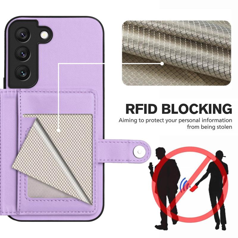 For Samsung Galaxy S22 5G Button Card Bag RFID Anti-theft Phone Case(Purple)
