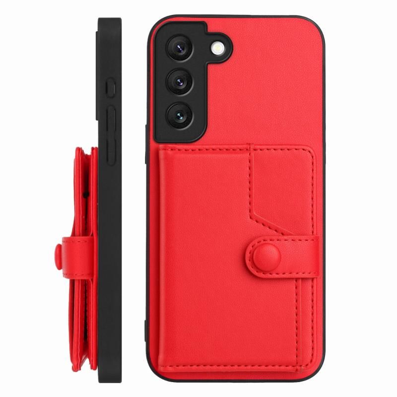 For Samsung Galaxy S22 5G Button Card Bag RFID Anti-theft Phone Case(Red)