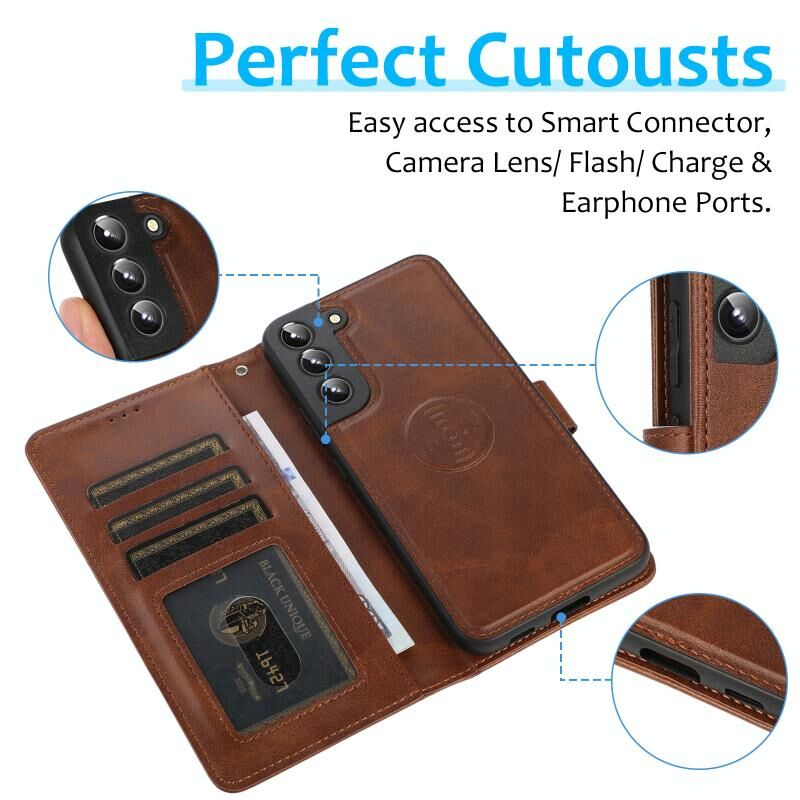 Για Samsung Galaxy S22+ 5G Calf Texture 2 σε 1 Αποσπώμενο μαγνητικό πίσω κάλυμμα δερμάτινη θήκη (καφέ)