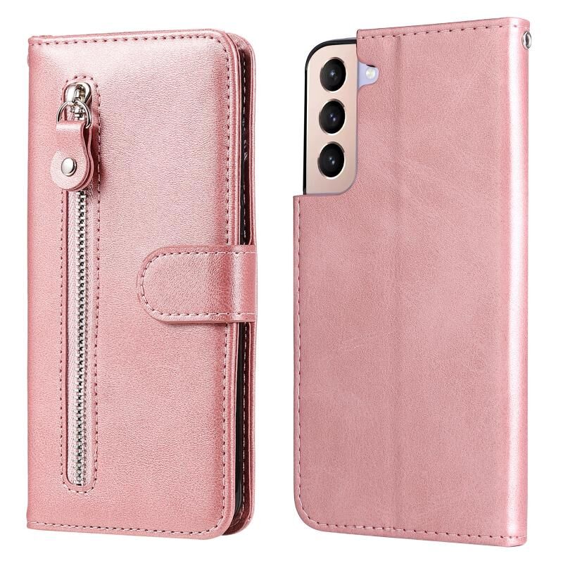 Για Samsung Galaxy S22 5G μοσχάρι υφή φερμουάρ οριζόντια Flip δερμάτινη θήκη τηλεφώνου (Rose Gold)