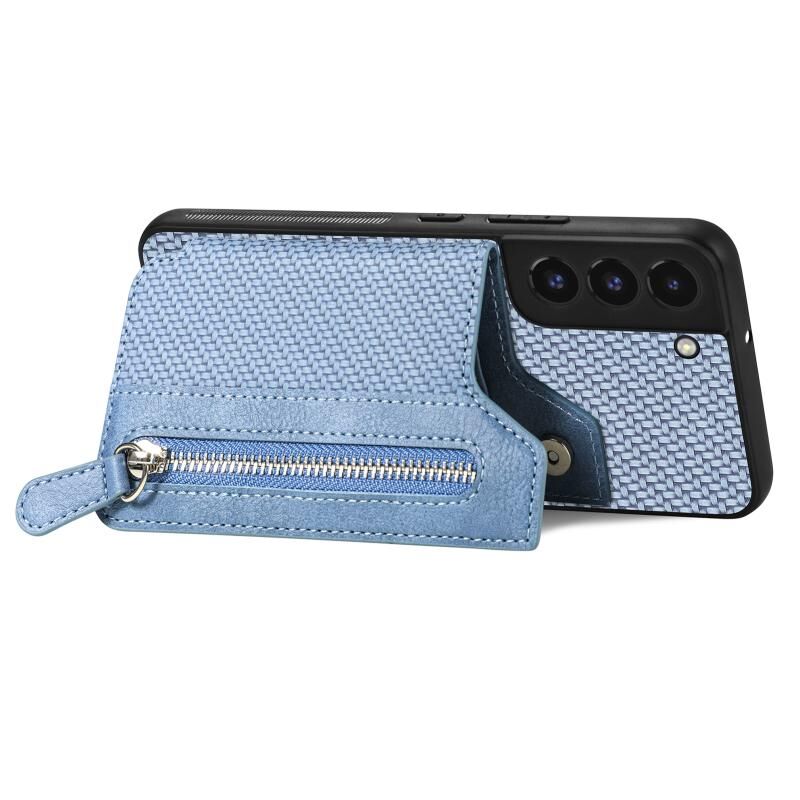 Για Samsung Galaxy S22 5G ινών άνθρακα οριζόντια Flip φερμουάρ πορτοφόλι τηλέφωνο υπόθεση (μπλε)