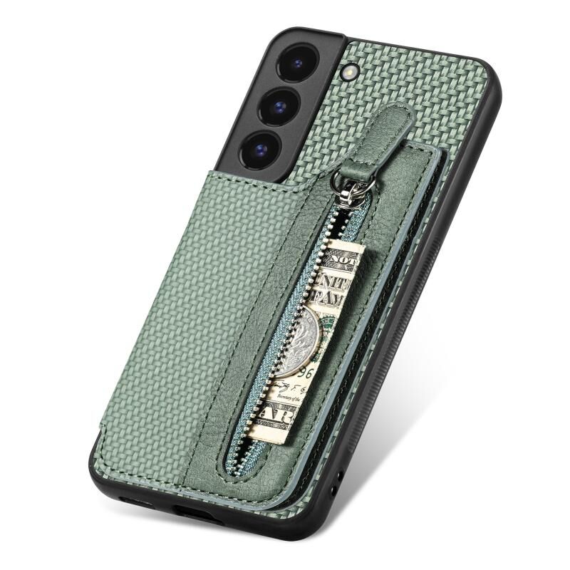 Για Samsung Galaxy S22 + 5G ινών άνθρακα οριζόντια Flip φερμουάρ πορτοφόλι τηλέφωνο υπόθεση (πράσινο)