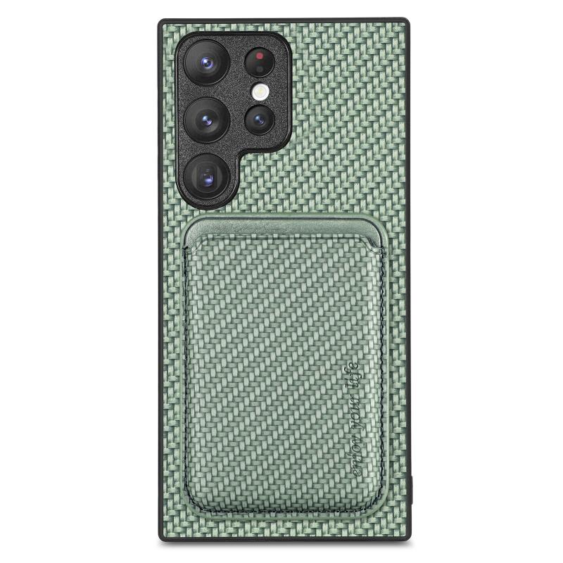 For Samsung Galaxy S22 5G Carbon Fiber Leather Card Magsafe Magnetic Phone Case(Green)